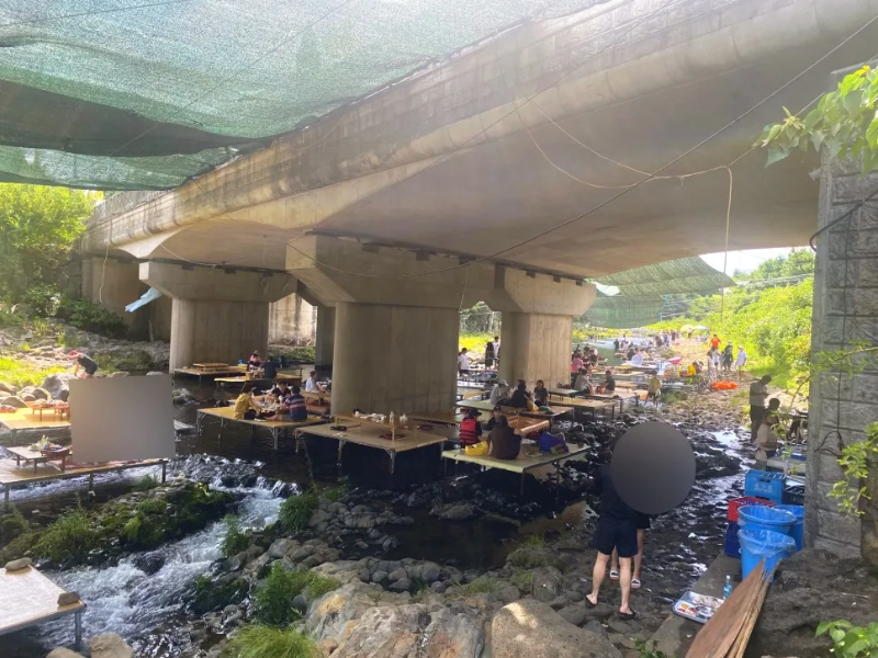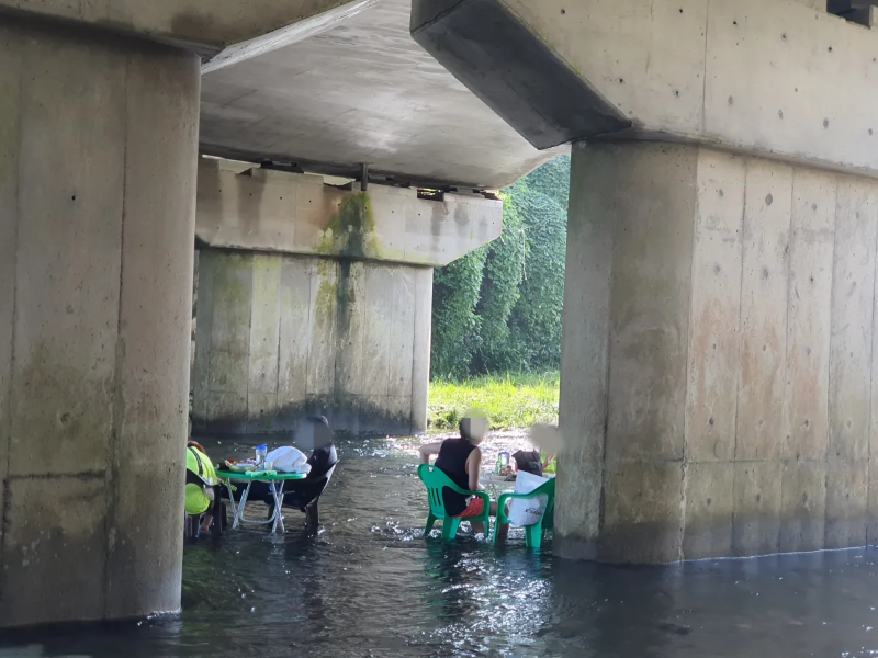 이렇게 테이블을 설치하고 물에 발을 담그고 백숙을 즐기면서 물놀이를 즐길 수 있답니다.