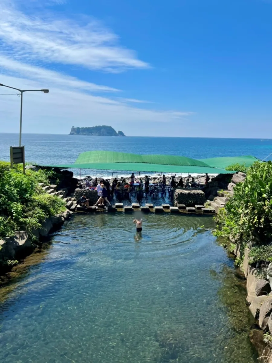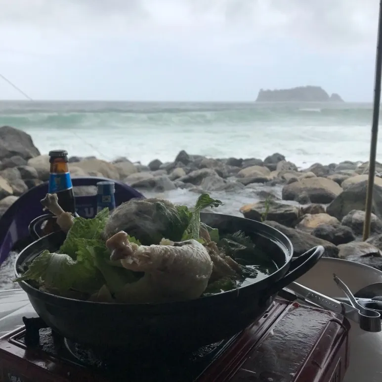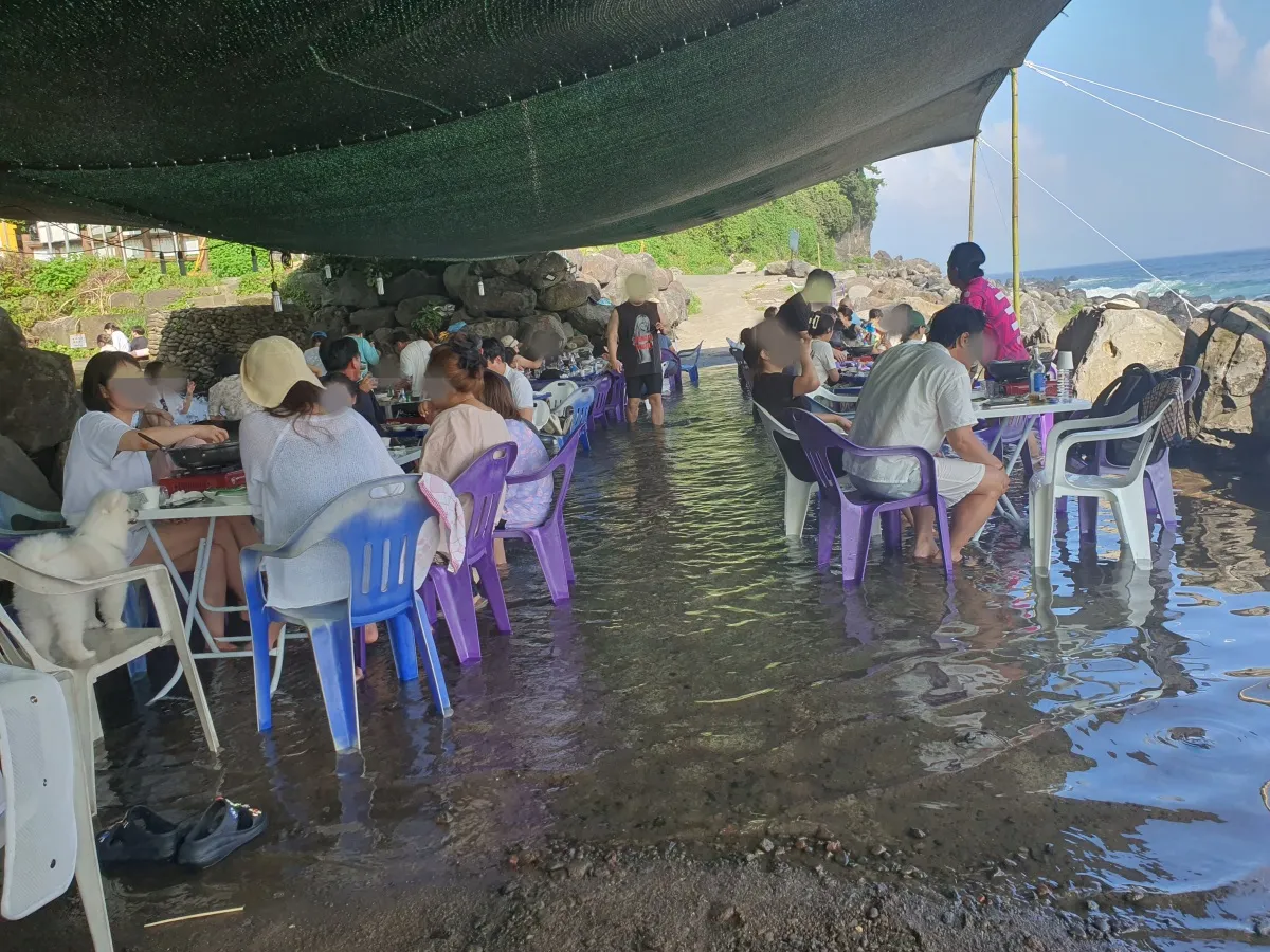 서귀포에서 가장 유명한 백숙과 물놀이를 함께 할 수 있는 곳이 위에서 설명한 강천천과 지금 소개드리는 속골유원지입니다. 범섬을 바로 앞에서 보는듯한 바다 풍경과 백숙은 환성의 조합인 것 같습니다.