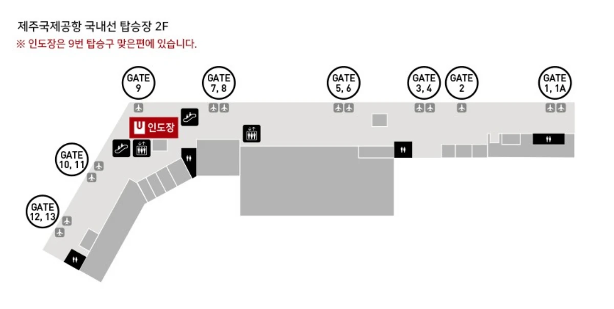 인도장소는 제주 공항 출발 9번 탑승구 앞에 위치해 있습니다.